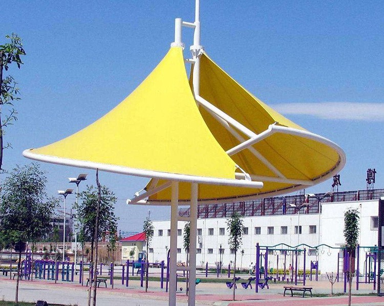 景觀膜結(jié)構(gòu)是一種新型的園林建筑,是在20世紀中期發(fā)展起來的一種新型建筑結(jié)構(gòu)形式,它是由多種高強薄膜材料以及加強構(gòu)件通過一定的方式使內(nèi)部產(chǎn)生一定預(yù)張應(yīng)力以形成某種空間的形狀,一般與園林景觀溶為一體,創(chuàng)造出讓人們盡情享受的快樂空間,充分展示了景觀膜結(jié)構(gòu)的藝術(shù)之美,它巧妙的整合周圍的環(huán)境,給人們一種典雅、浪漫溫馨之感。