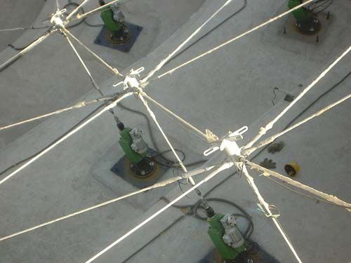 3、鋼絲繩強度按1670N/mm2,常用鋼絲繩強度有1570、1670、1770、1870、1960N/mm2,安全系數一般取6,靜態(tài)張拉的鋼絲繩安全系數可取3-4。